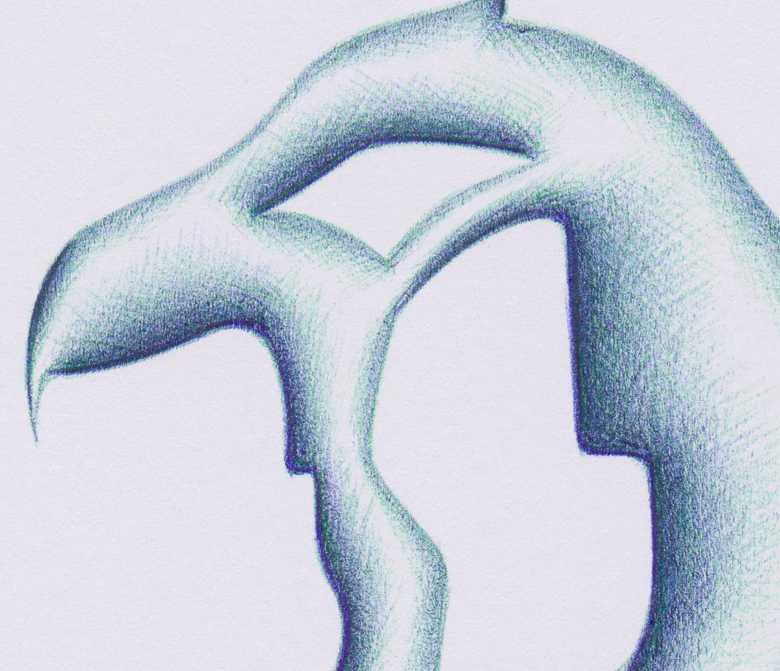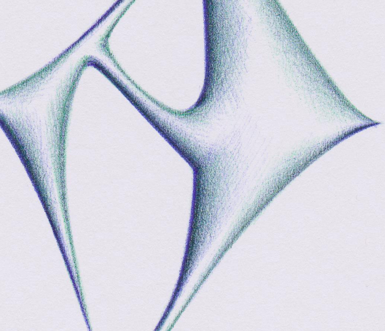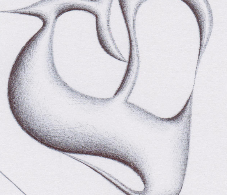 Quotidianamente, per trecentosessantacinque giorni l’anno, realizzo un disegno con una penna a sfera su supporto cartaceo. Si tratta di un esercizio manuale, nel quale, mediante un tratteggio incrociato, simulo effetti plastici con il chiaroscuro. E’ un’opera che nasce dalla gestualità, da un embrione di idea riassunta in una o più lettere dell’alfabeto, rigorosamente graziate. Attraverso un procedimento di distorsione e di contatto tra le estremità delle lettere, creo forme (mediante pieni e vuoti) che danno origine a: